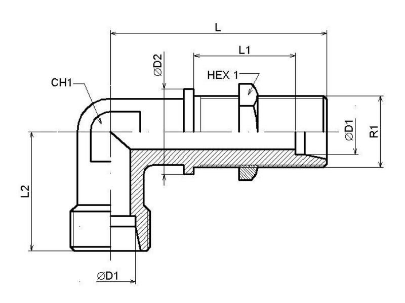 | D1 [mm] | D2 [mm] | Gewinde | HEX1 [mm] | CH1 [mm] | L [mm] | L1 [mm] | L2 [mm] | Nenndruck [bar] |