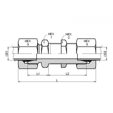| für Rohraußen-Ø [mm] | Gewinde | HEX1 [mm] | HEX2 [mm] | HEX3 [mm] | L [mm] | L1 [mm] | L2 [mm] | Nenndruck [bar] |